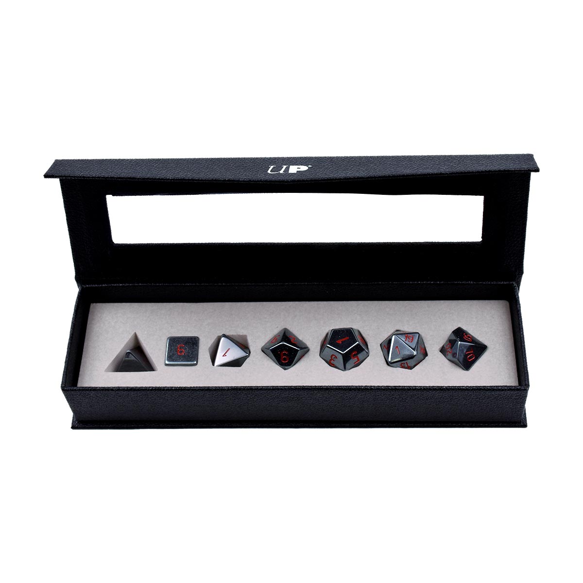- High-end tabletop gaming 7-piece role-playing game dice set made from Hematite
