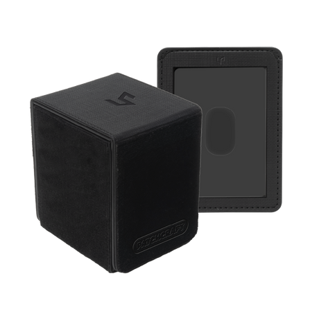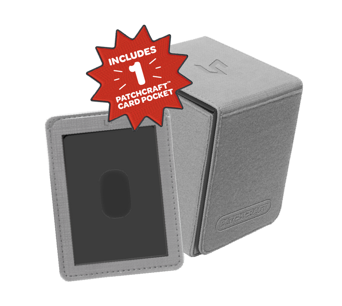 The PATCHCRAFT™ Alcove® Flip Deck Box® holds up to 100 double-sleeved cards, has a strong magnetic closure and comes with 1 PATCHCRAFT™ Card Pocket