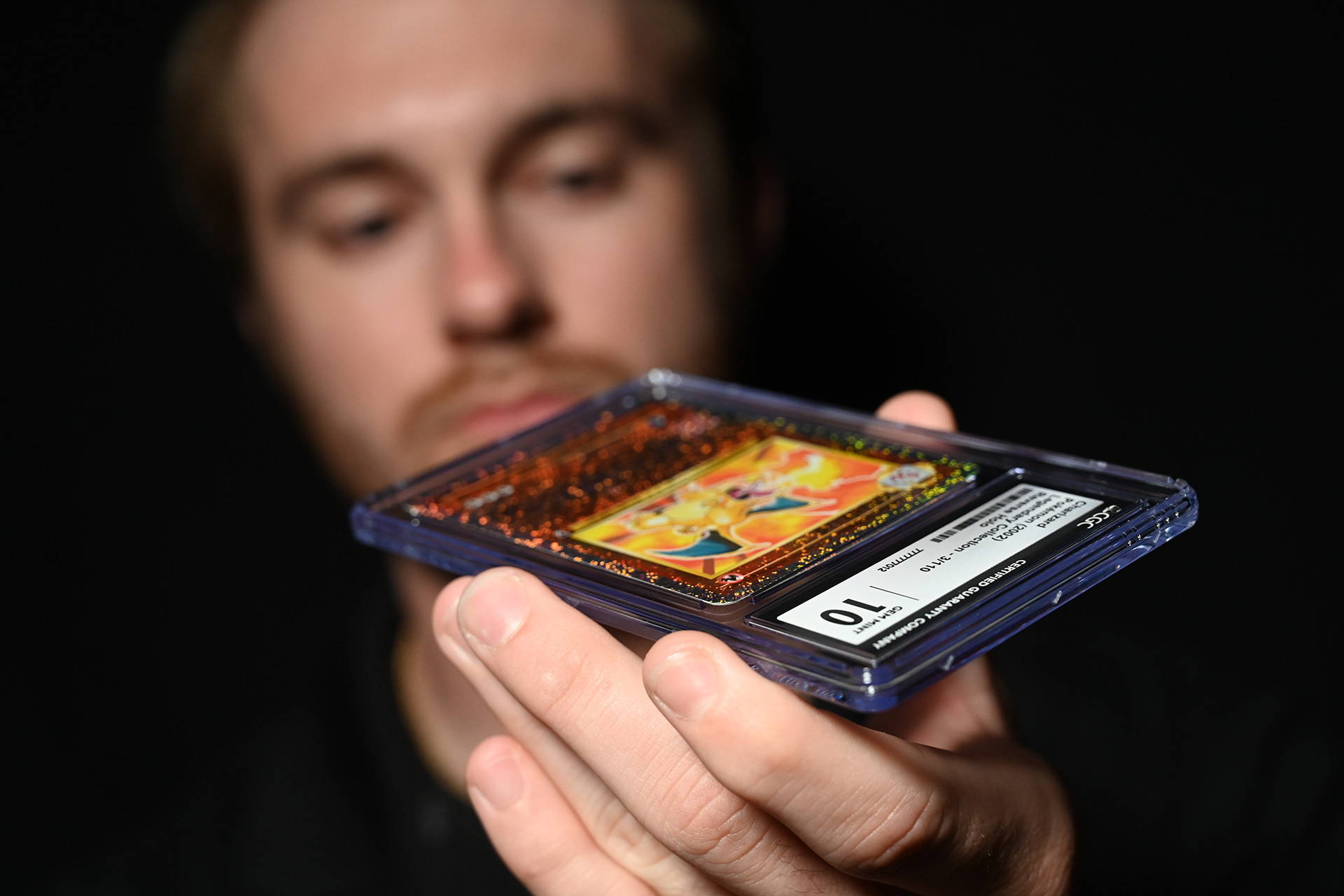After grading, the card and a label bearing its description, grade, certification number and a QR code are inserted into a CGC Cards holder.