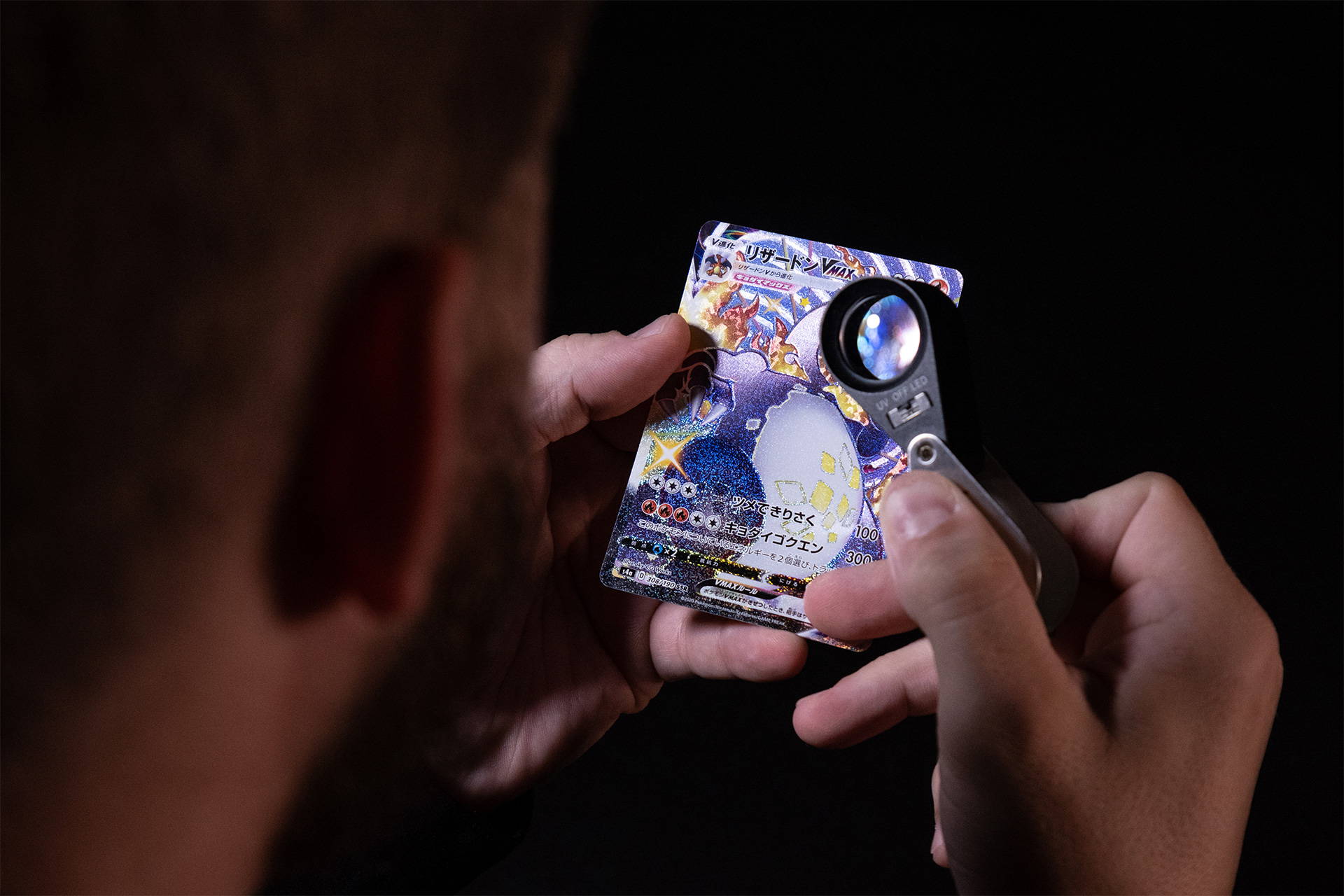 A CGC Cards Quality Control Specialist carefully inspects the card, label and holder for accuracy, and any defects or contaminants.