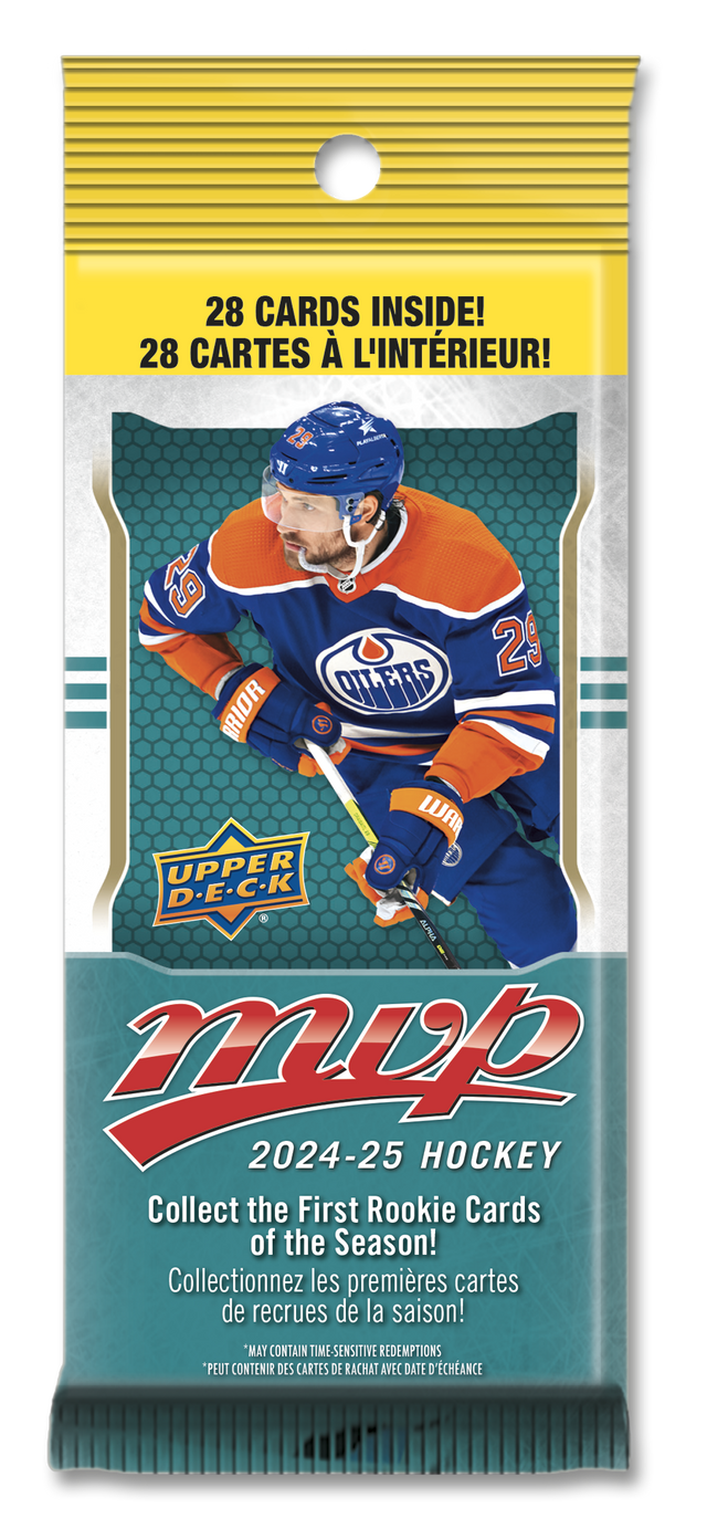 This 2024-2025 Upper Deck MVP Hockey Fat Pack offers the ultimate collection for hockey enthusiasts. With its high-quality features, it provides an authentic and immersive experience for fans of the sport. Enjoy a wide selection of top players and their stats, as well as exclusive card designs. Elevate your hockey card collection with this must-have product.