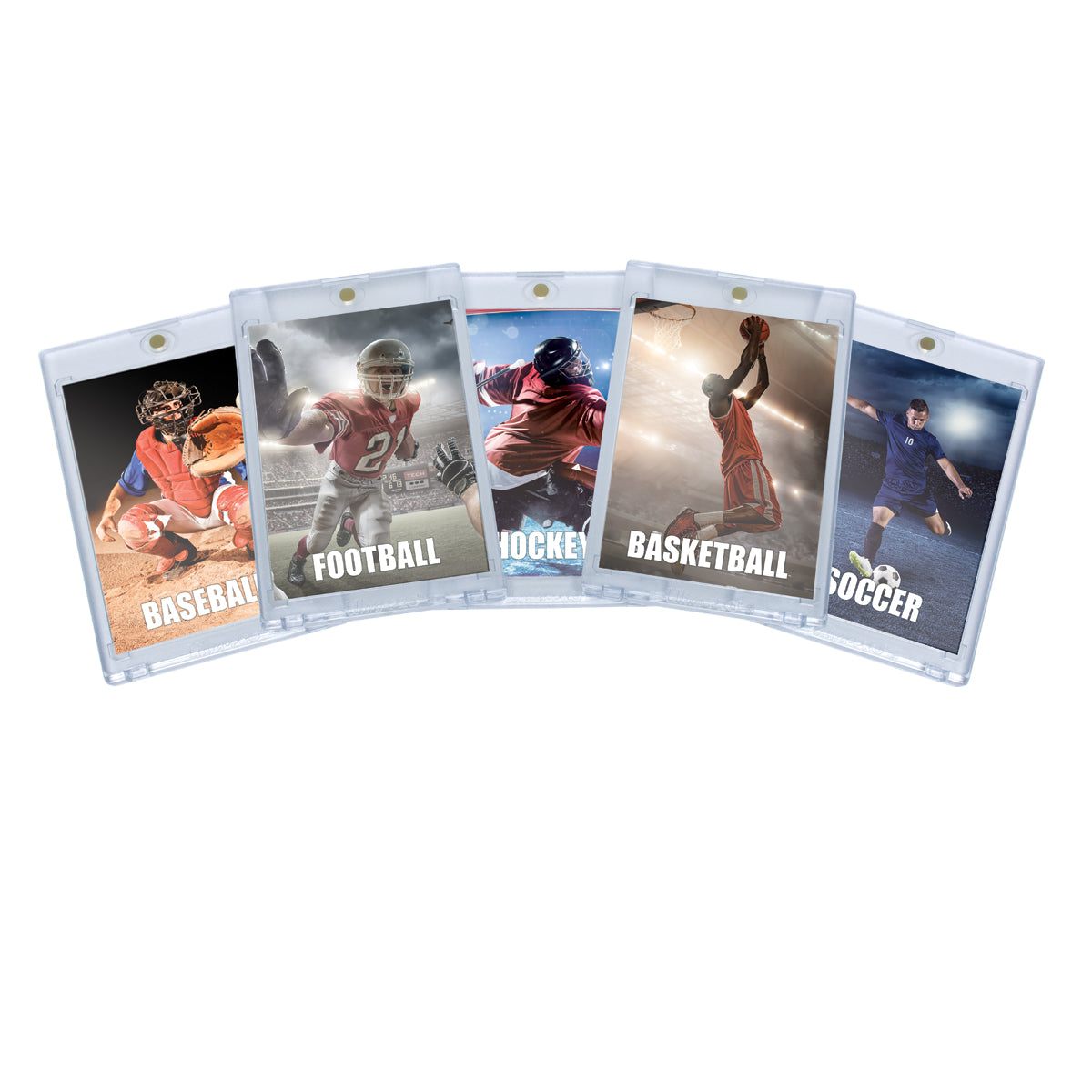 Ultra PRO's ONE-TOUCH holders are premium trading card storage cases designed as the final destination for your collectible trading cards. The two-piece ONE-TOUCH holders are uniquely designed with slide-in hinges and magnetic closure so you'll never have to use a screwdriver again. The holder uses UV-blocking additives to protect your card from harmful UV rays and is made with non-PVC materials to provide acid-free protection - ensuring your valuable hit retains its condition while under the display. Our ONE-TOUCH holders are ideal for presenting prized and super rare gaming cards as well. This model can hold standard cards (2-1/2" X 3-1/2") up to 35pt in thickness. Each pack comes with five (5) individual ONE-TOUCH holders.