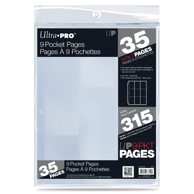 Ultra PRO Pages in nine-pocket style. Archival quality pages that hold standard-sized cards with 2-1/2" X 3-1/2" dimensions or smaller. Also ideal for sticker cards, coupons, and other collectibles. Pages are clear on both sides and fit in our standard-size 3-ring albums.