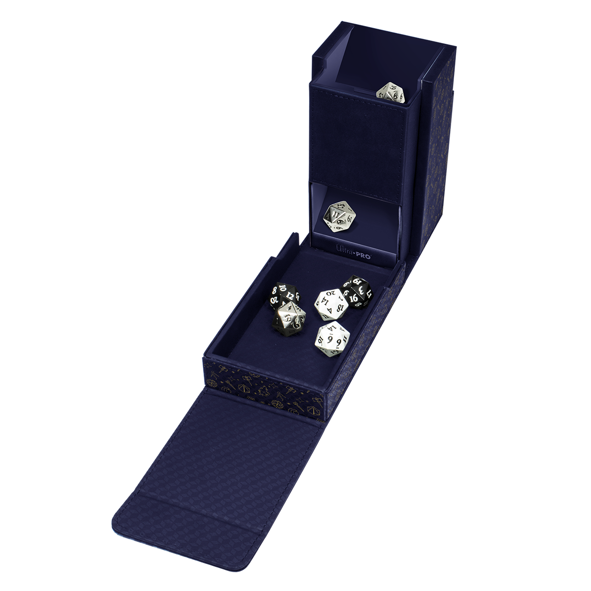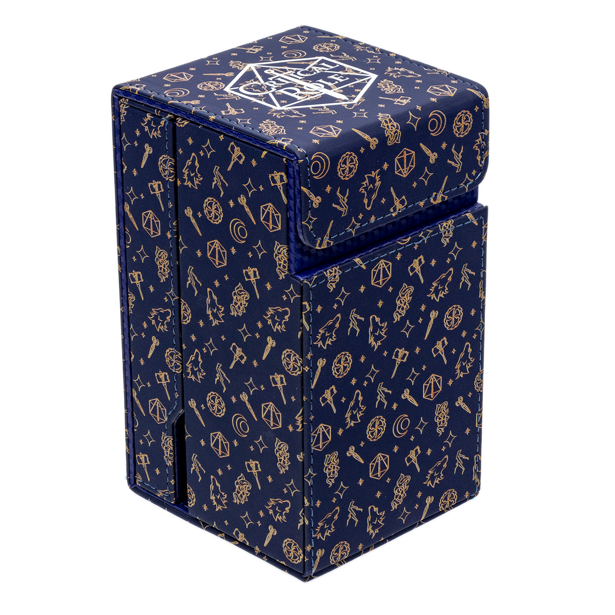 The Printed Dice Tower for Critical Role Bells Hells is the ultimate tabletop gamer’s companion. Equipped with a soft suede leatherette exterior and durable core, you can store and roll dice all in a single 3.75 in. x 3.35 in. x 5.90 in. space. The lid flips down to release dice into a walled dice catching tray. Drop dice through 3 injection molded ramps to ensure durability and randomized rolls. When you are done playing, you can flip up the attached tray to store 40+ standard sized RPG dice and secure the dice tower shut with the strong magnetic closure that Ultra PRO’s Alcove accessories are famous for. (Dice not included)