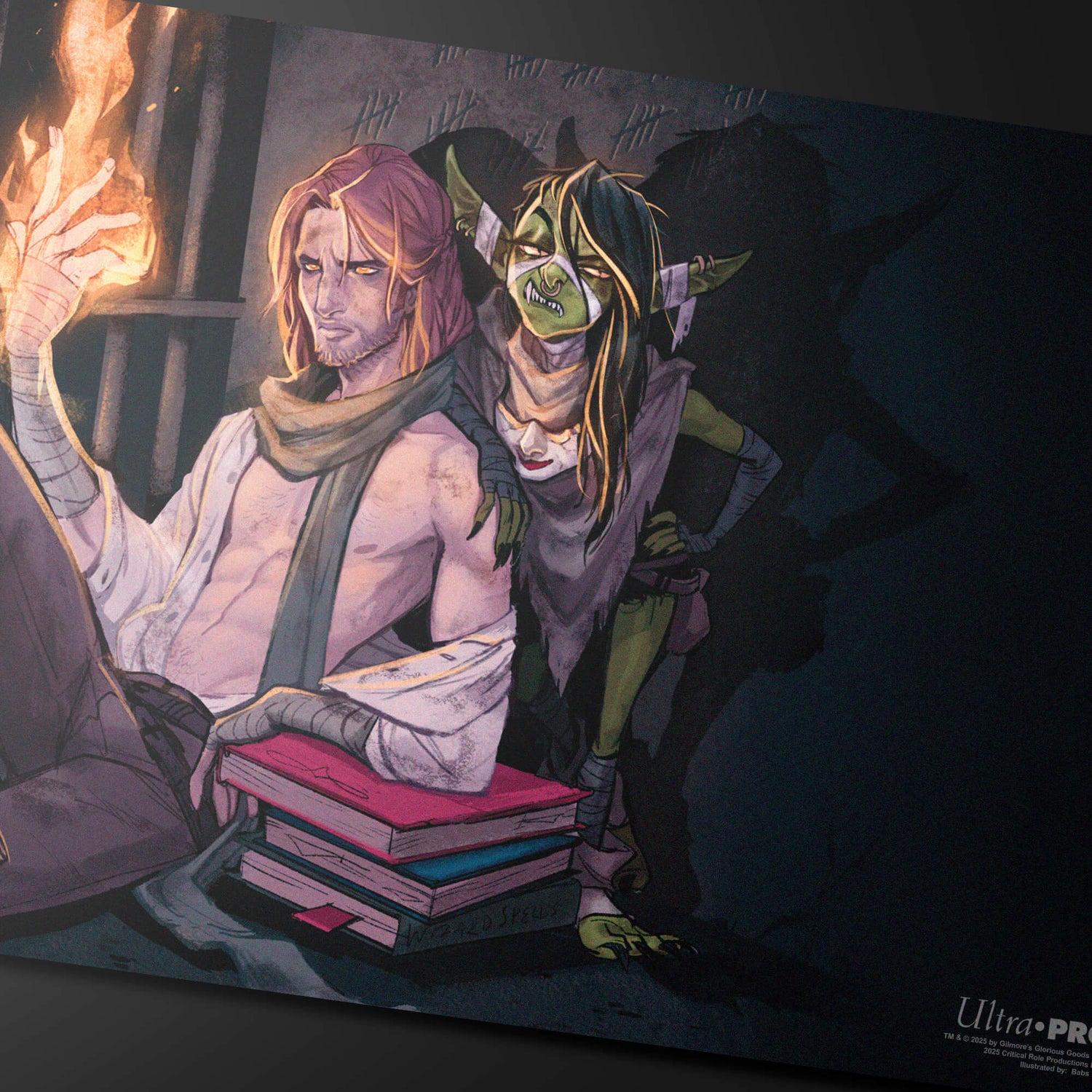 The 10-Year Anniversary of Critical Role continues as we explore the party’s spicier side! This exclusive playmat features high-quality artwork featuring Caleb and Nott by Babs Tarr, making it a great collector’s piece for every Critter. Made with a soft fabric top and non-slip rubber backing, playmats provide a safe gameplay surface for your specialty dice, miniatures, and cards. With dimensions of approximately 24 in. x 13.5 in., a playmat also makes an excellent oversize mousepad for home or office.