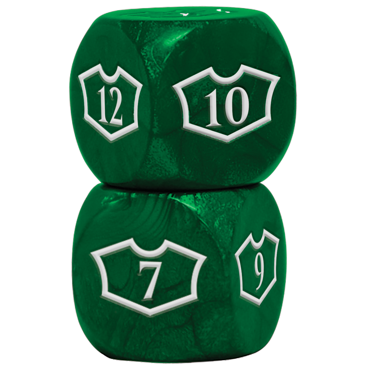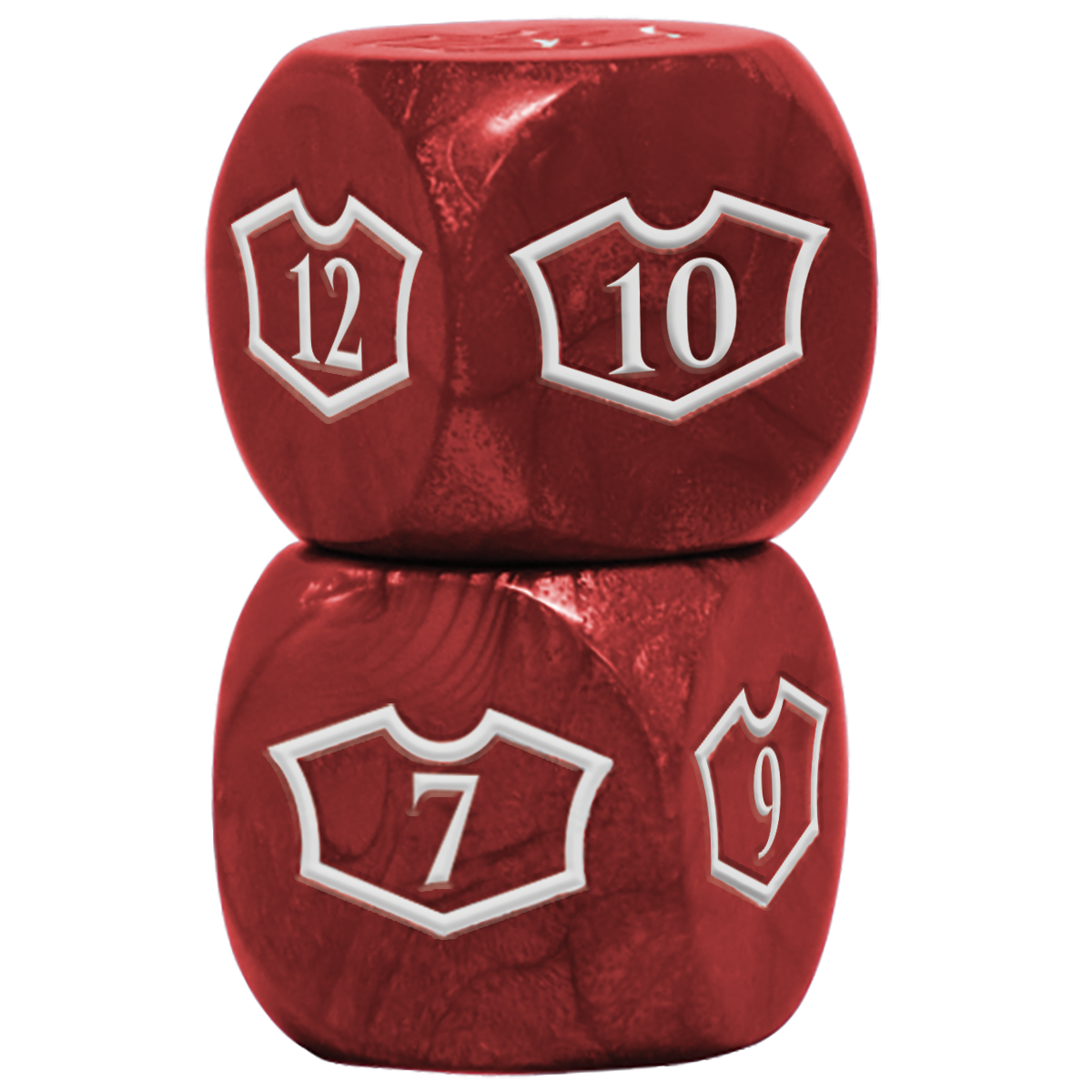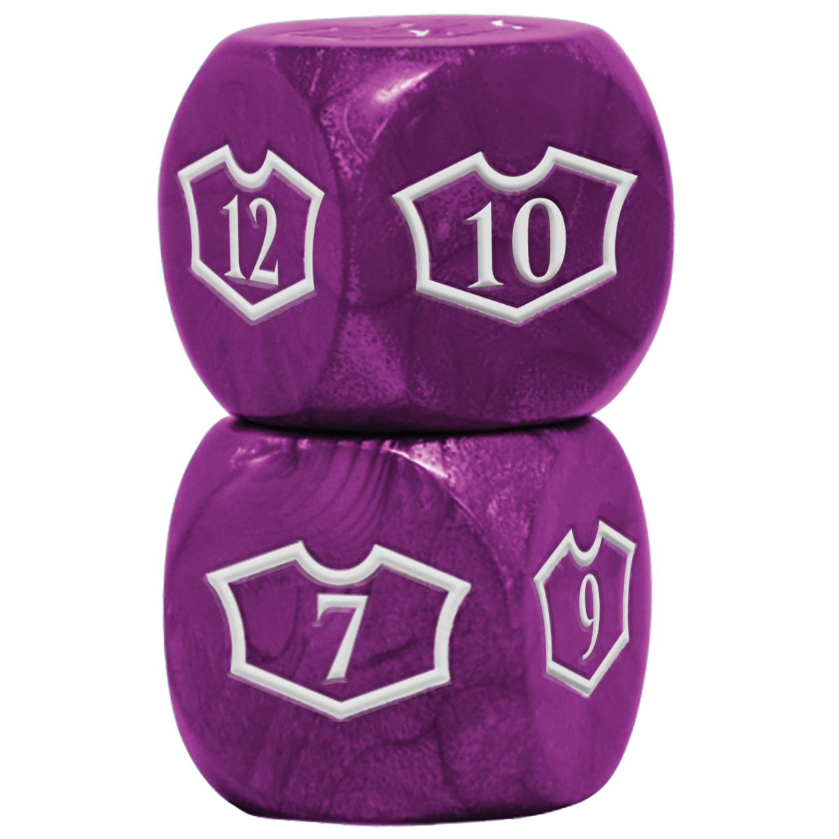Show your Loyalty with the updated Deluxe Loyalty Dice for Magic: the Gathering! Each face features the iconic "loyalty" outline with numbers 1-6 on two dice and 7-12 on the other two dice, allowing you to save up for that ult with a single die face representing your progress clearly. Each set includes four (4) six-sided dice, measuring 22mm, packaged in a reusable storage box. Rounded corners allow dice to roll further for better randomization and protect gaming table surfaces from dents or marks.