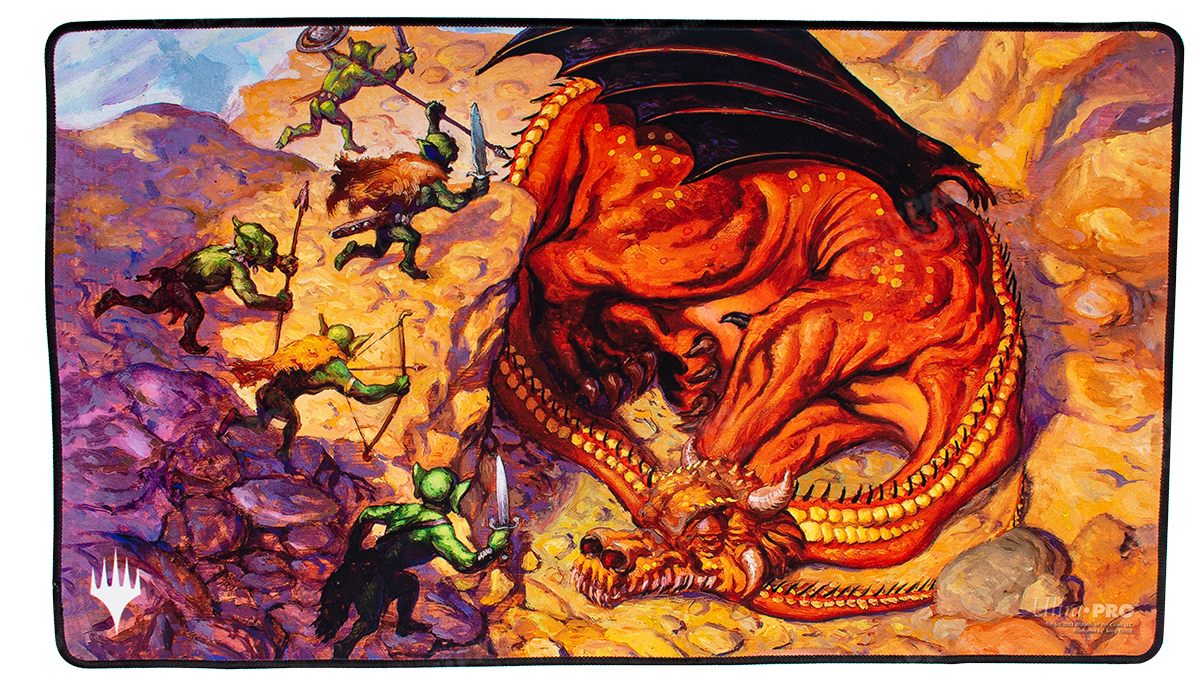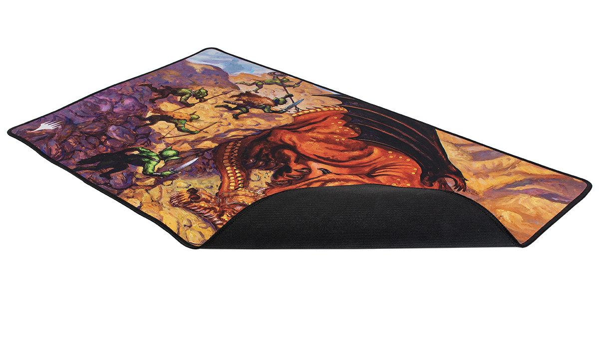 Stitched Playmats feature popular Magic: The Gathering artwork. Made with a soft fabric top to reduce damage to cards during play and a non-slip rubber backing to keep the playmat from shifting during use, playmats enhance the gameplay experience. The stitched edges offer an added premium feel. With dimensions of approximately 24 in. x 13.5 in., a playmat also makes an excellent oversize mousepad for home or office.
