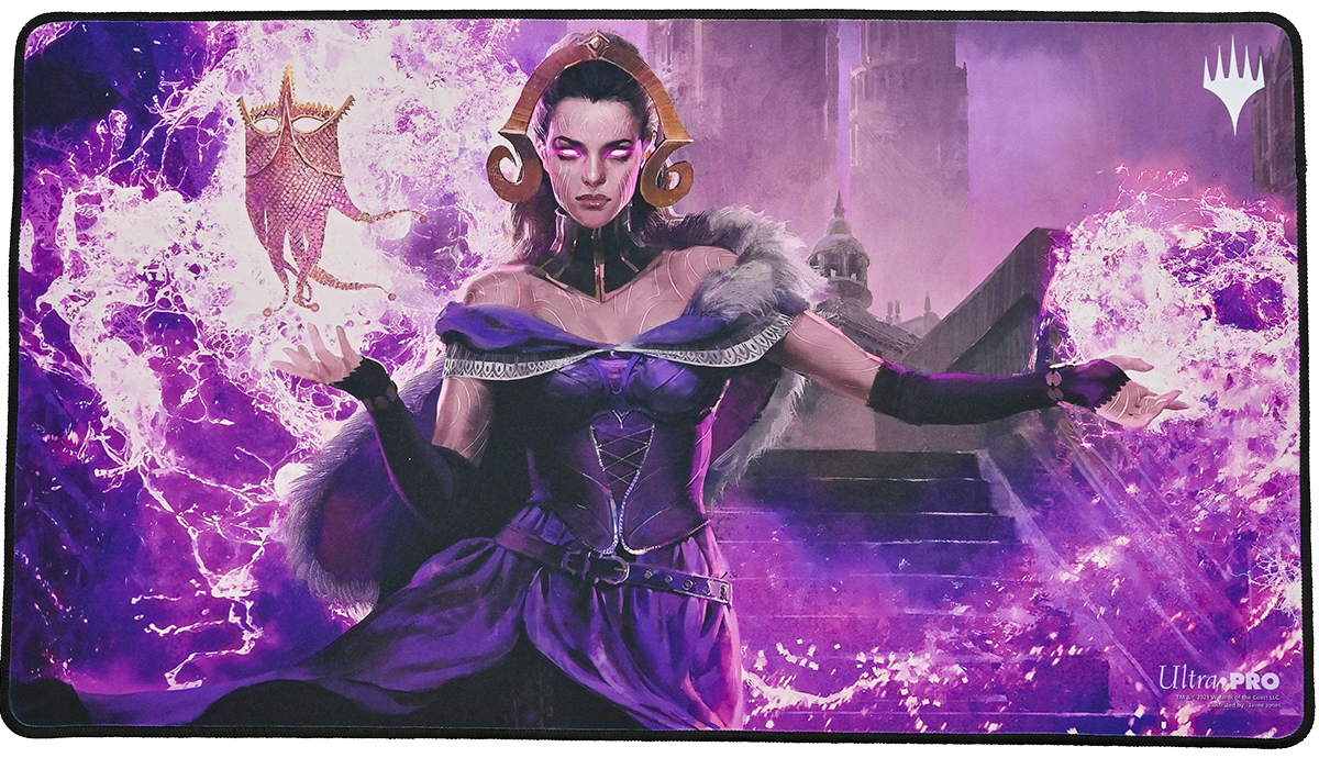 Stitched Playmats feature popular Magic: The Gathering artwork of Liliana, the Last Hope by Jaime Jones. Made with a soft fabric top to reduce damage to cards during play and a non-slip rubber backing to keep the playmat from shifting during use, playmats enhance the gameplay experience. The stitched edges offer an added premium feel. With dimensions of approximately 24 in. x 13.5 in., a playmat also makes an excellent oversize mousepad for home or office.