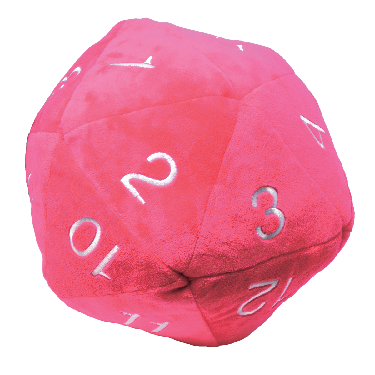 Roll big or go home! Made with an ultra-soft, fuzzy hot pink fabric with stitched white numbers, this Jumbo D20 is soft enough to cuddle or toss. With an approximately 10 in. diameter and reinforced felt backing to help retain its shape, this stuffed toy is great for kids and adults alike!