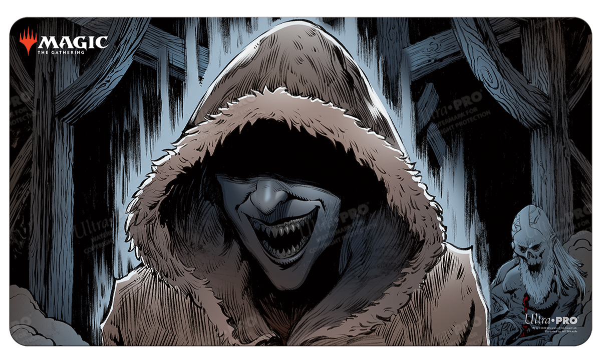 Up your game at your next game night with these official Magic: The Gathering playmats showcasing highly detailed and vibrant Kaldheim: Valki, God of Lies artwork from the popular trading card game. Made with a premium fabric top to prevent damage to cards during gameplay for tabletop gamers. With dimensions of approximately 24" X 13-1/2", this playmat is also the perfect decorative oversized mouse pad for computer and laptop workstations. Non-slip rubber backing lets the playmat lay flat and prevents it from shifting during use.