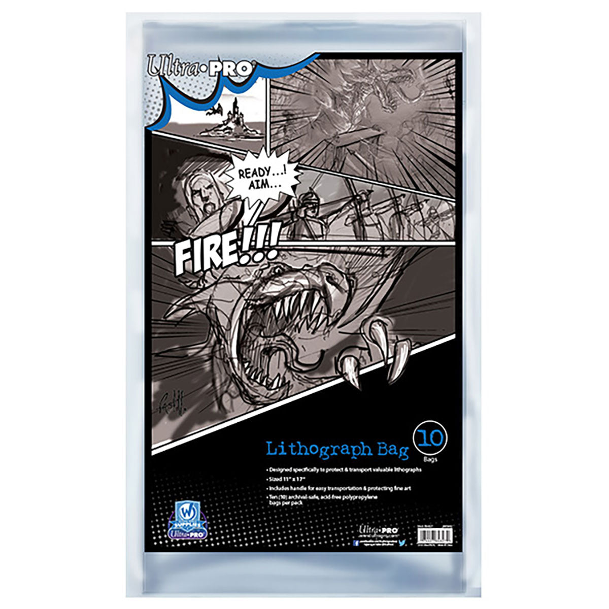 The 11" x 17" Lithograph Bag is part of the exclusive line of high-end comic books and artwork supplies. Specially designed for conventions, this line is the perfect solution for collectors and dealers alike. 11" x 17" Lithograph Bag features custom designed, easy open top that allows easy access for lithographs. Die-cut handles for easy transport at conventions and shows. Made from Archival quality polypropylene film. (lithograph/artwork not included)