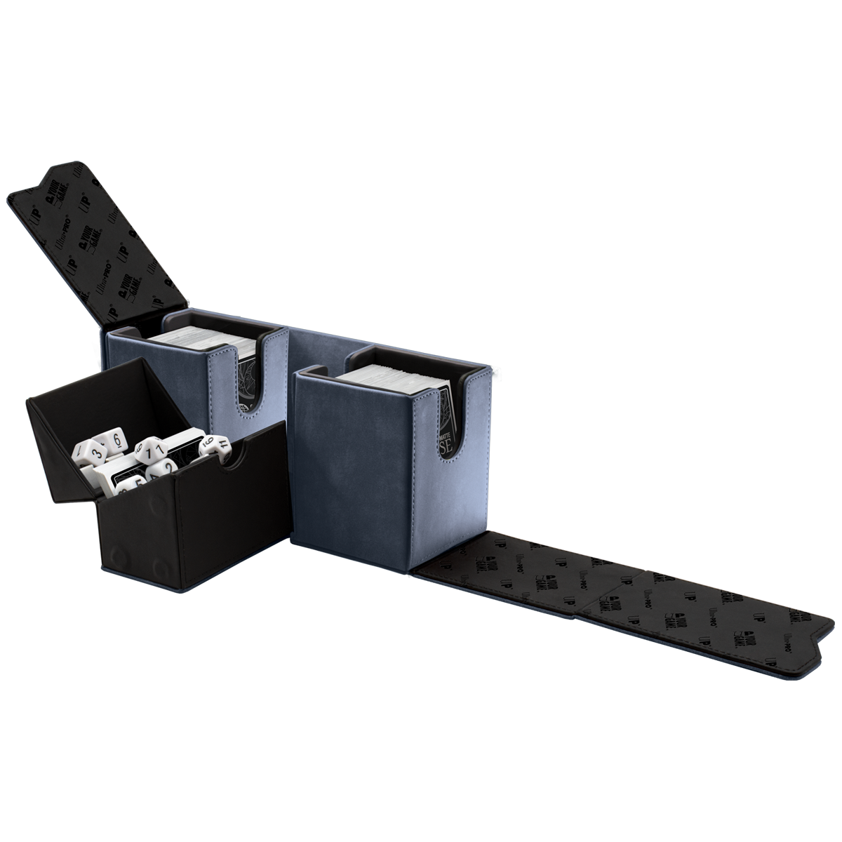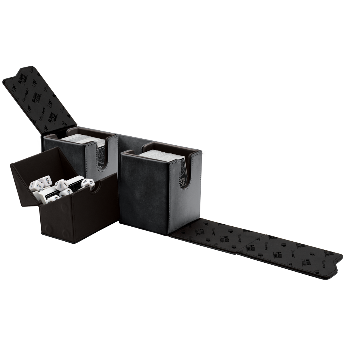 - Center compartment can hold an additional deck, tokens, counters, dice or other small gaming accessories