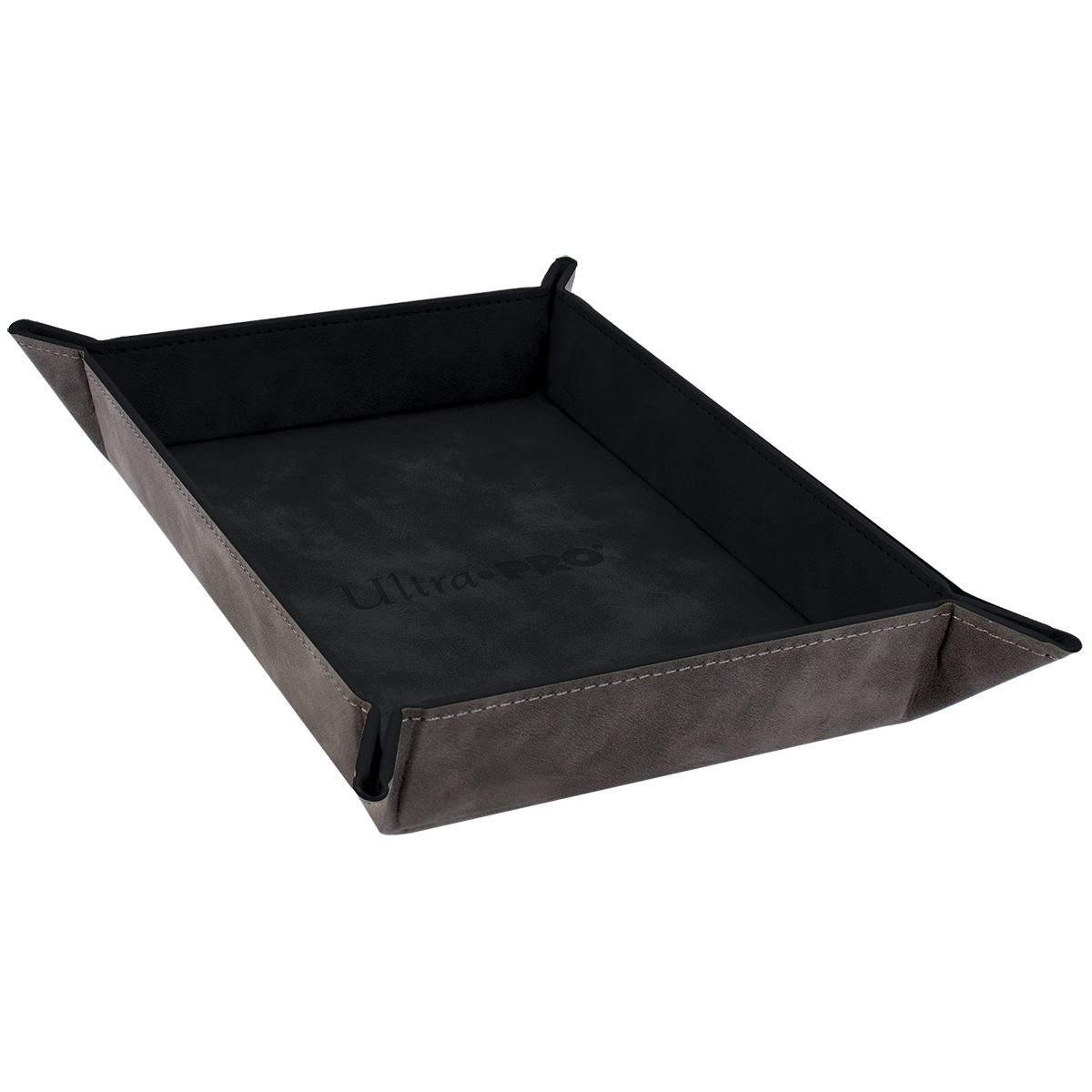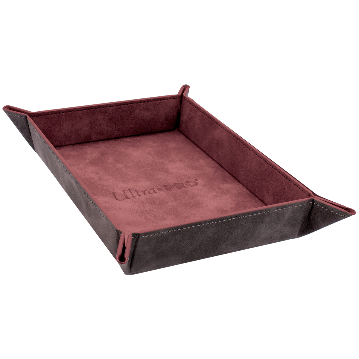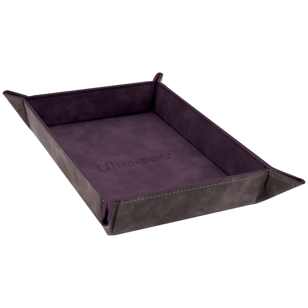 Ultra PRO's Foldable Dice Rolling Tray offers a safe and aesthetic space for rolling dice. These trays are no bigger than a sheet of paper (8.5 in. x 11 in.) when flat, and utilize small magnets in each corner to easily pop up walls to keep dice under control when rolling. Store your dice rolling tray easily in your backpack, character folio, binder, or favorite board game box. With one side a grey PU material, and the other featuring a soft suede leatherette in one of the Suede Collection's beautiful jewel-tone colors, there is a dice rolling tray for every gamer.