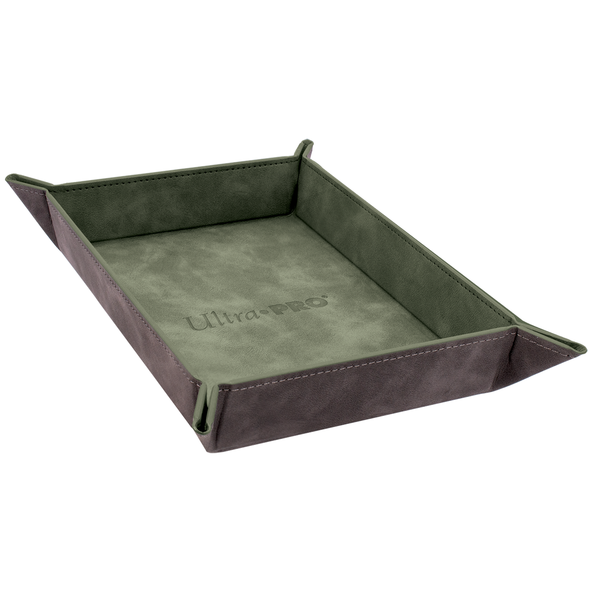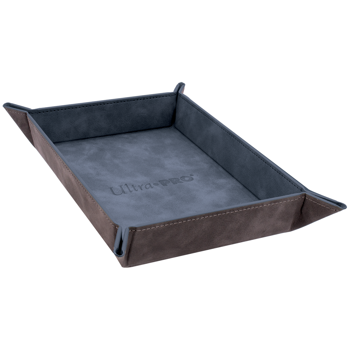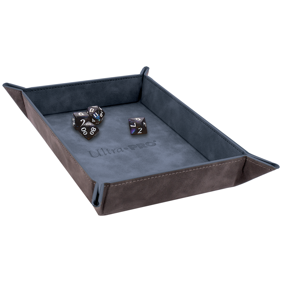 Ultra PRO's Foldable Dice Rolling Tray offers a safe and aesthetic space for rolling dice. These trays are no bigger than a sheet of paper (8.5 in. x 11 in.) when flat, and utilize small magnets in each corner to easily pop up walls to keep dice under control when rolling. Store your dice rolling tray easily in your backpack, character folio, binder, or favorite board game box. With one side a grey PU material, and the other featuring a soft suede leatherette in one of the Suede Collection's beautiful jewel-tone colors, there is a dice rolling tray for every gamer.