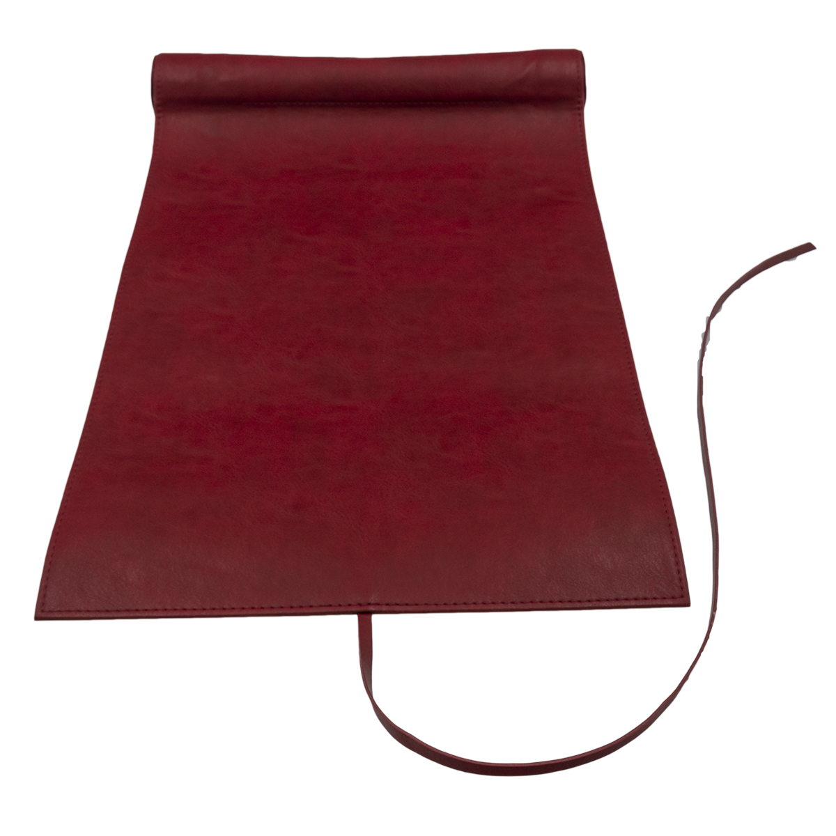 - Burgundy Red Leatherette exterior with cream-colored backing with D&D ampersands on each end of the scroll