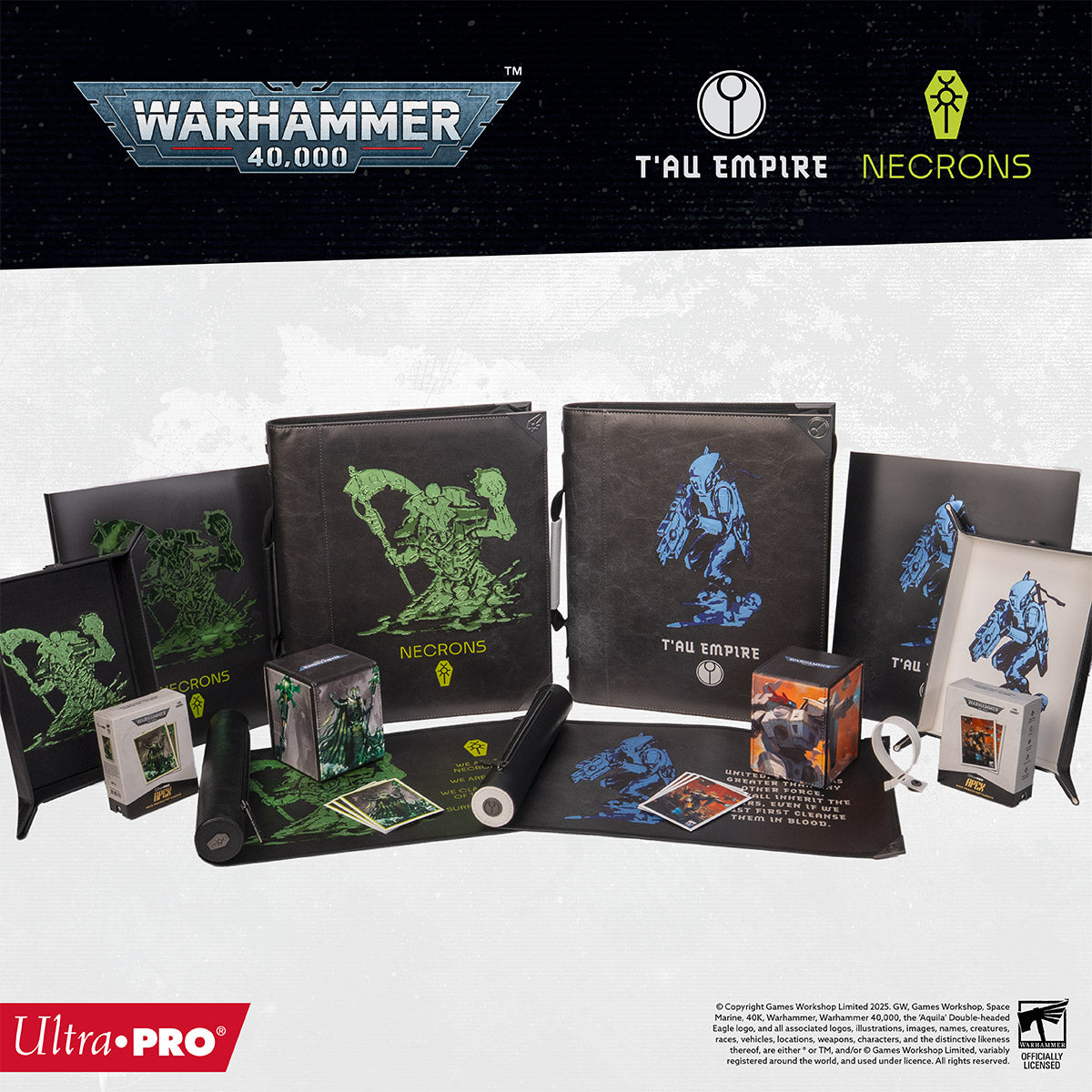 - Textured leatherette exterior with interior pattern of spot UV faction symbols